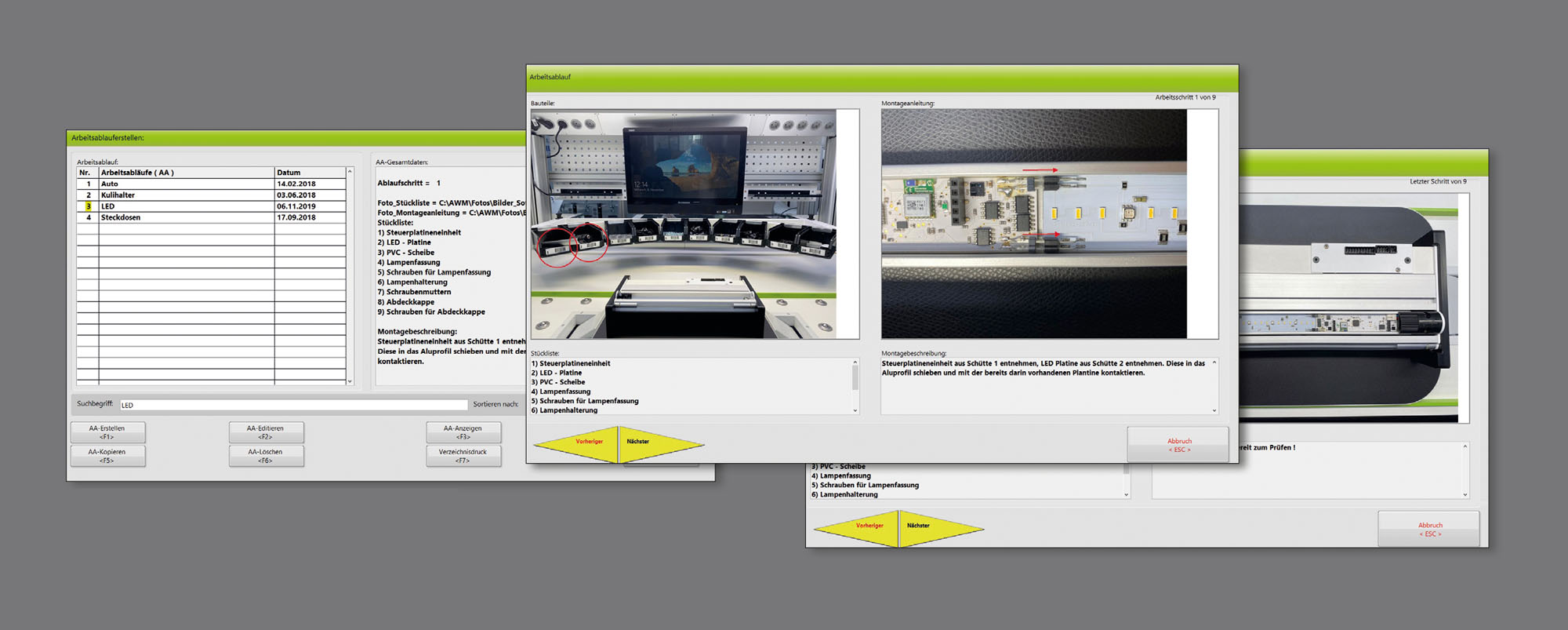 The AWM assembly software is ideal for both complex and simple production steps during the training phase as well as for ongoing quality control and monitoring throughout the value creation process. Discover features such as a flexible work plan generator, a professional sequencer, pick-and-place integration, and much more.