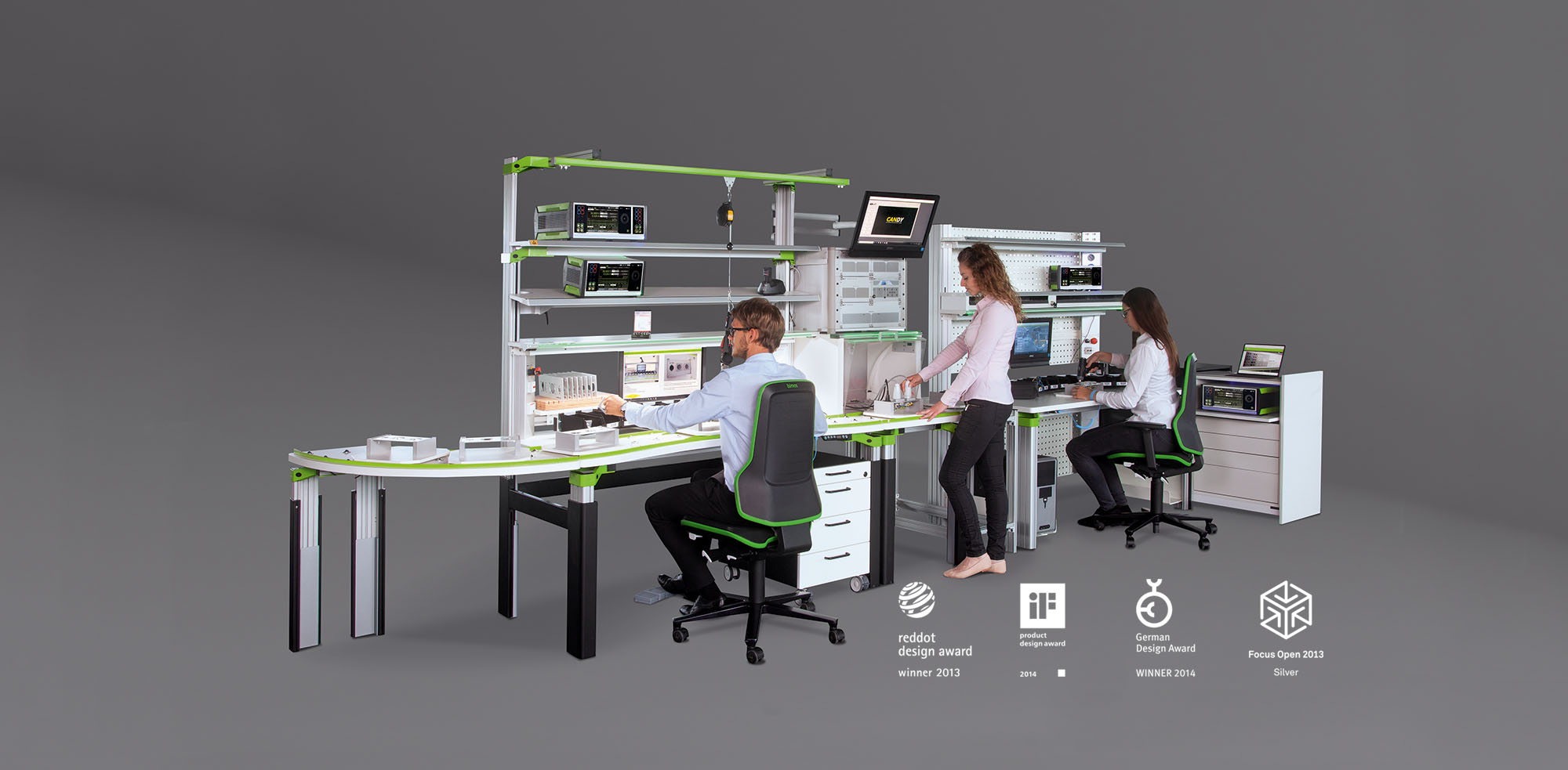 Increase the efficiency and ergonomics of your production line with our customized assembly workstations. As an experienced manufacturer of assembly workstations, we know what matters most: benefit from flexible, height-adjustable tables, innovative lighting, and tailored power supply solutions.