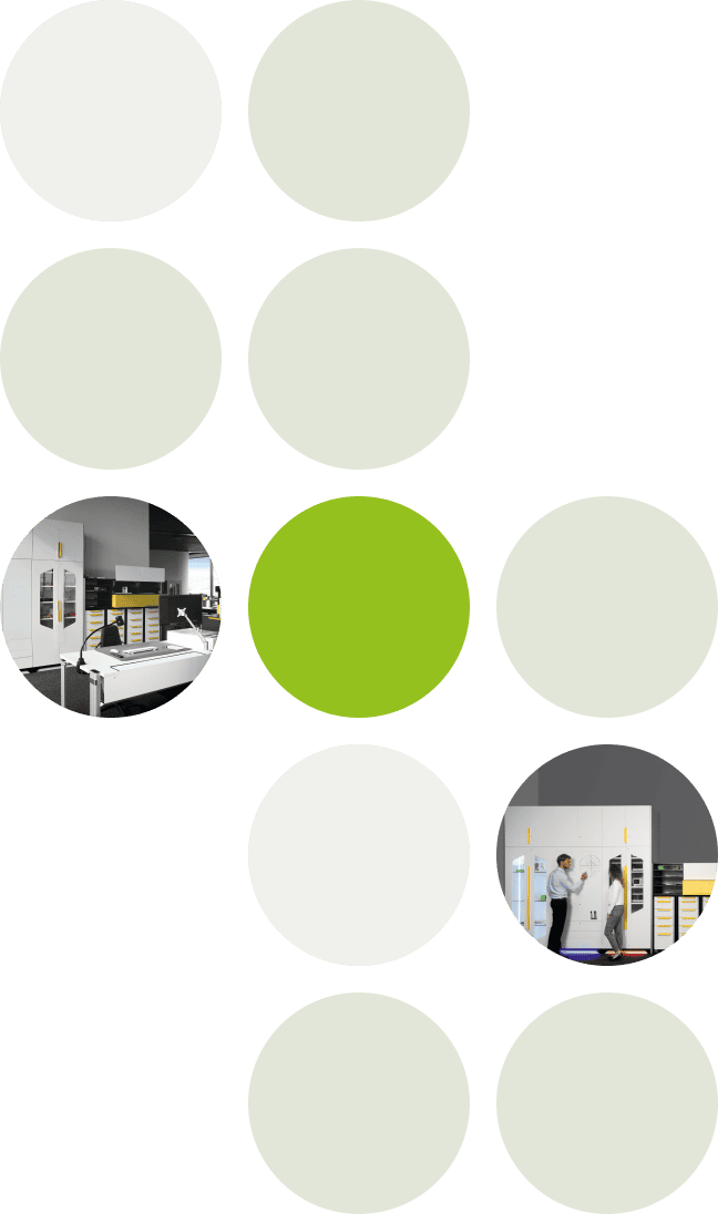 Nicht nur das Möbelsystem elneos connect erhält durch die neuen grünen Connectoren eine frische und moderne Ausstrahlung. Auch das neue Gerätesystem elneos five besticht durch eine durchgängig konsequente und bedienerfreundliche Optik, die in vielen Bereichen in dem frischen und neuzeitlichen Grün gehalten ist. Die Farben des RAL- DESIGN-Systems erfüllen die höchsten Ansprüche von elneos connect und elneos five.